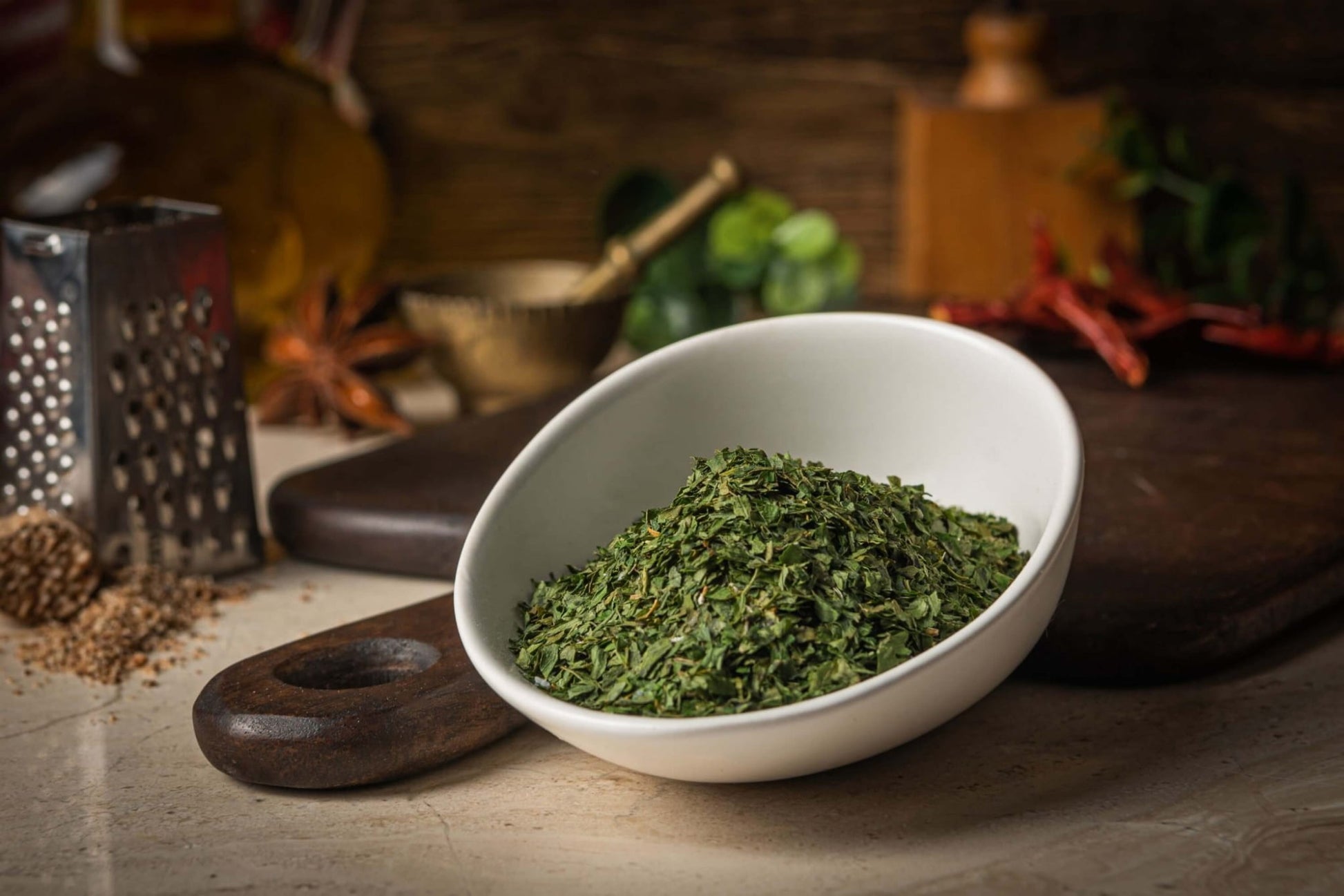 Pietruszka to jedno z najczęściej wykorzystywanych ziół w kuchni. W wersji suszonej zachowuje swoje właściwości smakowe i aromatyczne, choć różni się od świeżej natki – ma bardziej korzenny zapach i delikatnie gorzki posmak. Świetnie podkreśla smak wielu potraw i może być stosowana przez cały rok, niezależnie od sezonu.
